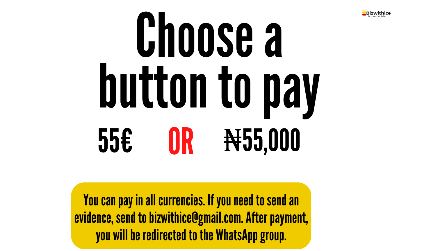 Pay by Bank Transfer using the details and send evidence to bizwithice@gmail.com. Account details- Kas & Ice, 0125244637 Wema Bank